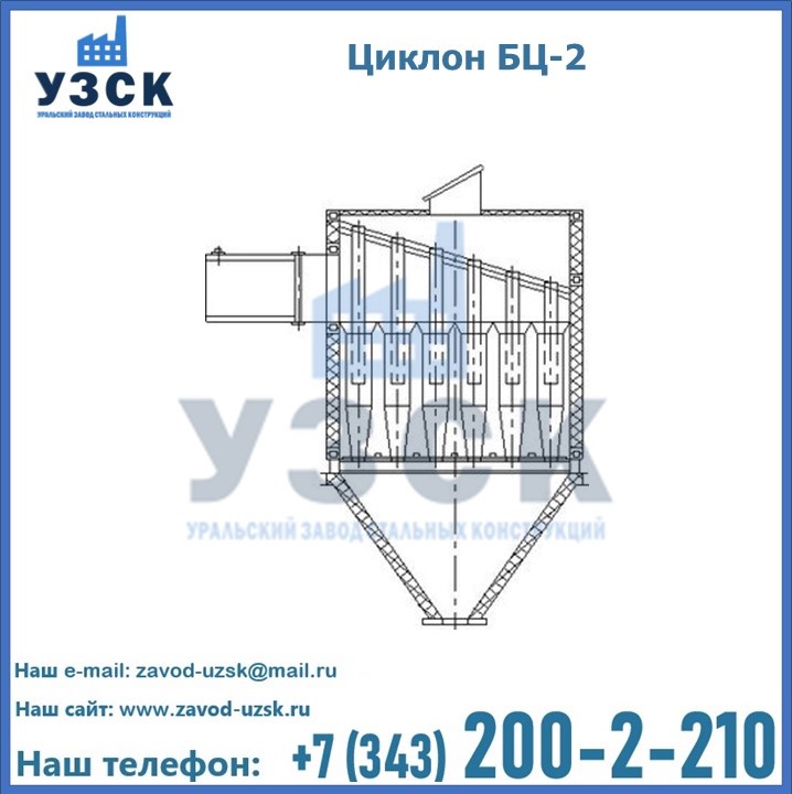 Уральский Завод Стальных Конструкций производит продукцию, в том числе, батарейные циклоны БЦ-2, изготовленную в соответствие со всем стандартами и требованиями. Качество и безопасность поставляемого нами оборудования подтверждены необходимыми сертификатами отечественного и европейского образца. Процесс изготовления контролируется на всех этапах, мы ответственно подходим к выбору материала и качеству монтажа. К каждому заказу существует индивидуальный подход, возможны различные варианты комплектации. УЗСК также занимается реализацией и производственным выпуском циклонов и прочих изделий под заказ. Цена на нашу продукцию формируется исходя из индивидуальных требований заказчика и специфики производства. Уральский Завод Стальных Конструкций гарантирует качество, износостойкость и высокую производительность предлагаемого оборудования. Сделать заказ в Туле очень просто, требуется только оформить заявку на нашем сайте или позвонить по указанному в разделе «КОНТАКТЫ» телефону.