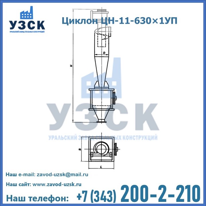 Уральский Завод Стальных Конструкций в Туле производит и продает надежное, эффективное и производительное оборудование, имеющее длительную гарантию и большой эксплуатационный ресурс. УЗСК также предлагает циклоны из нержавеющей стали высокого качества. По желанию заказчика толщина стали для циклона и бункера может быть увеличена. Заказать и купить циклоны ЦН-11 высокого качества и по доступной цене можно через наш сайт или по указанному в разделе «Контакты» телефону.