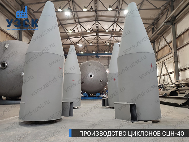 Циклоны СЦН-40 являются очистительной системой, обладающей более качественными показателями выноса вредных примесей в сравнении со всеми другими моделями циклонов, при этом энергозатраты у них всех одинаковы. Уральский завод стальных конструкций в Туле занимается продажей готовых циклонов СЦН-40, а также проектированием, сервисным обслуживанием пылеуловителей и осуществляет монтажные работы циклонов. Монтаж аппаратов ЦСП-40 осуществляется на стороне, с которой происходит всасывание воздуха. Показатели массы устройства напрямую зависят от его производительности.