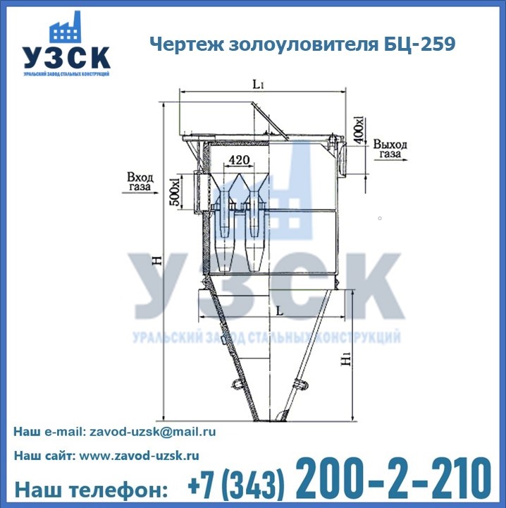 Если вы планируете купить то или иное оборудование, например, циклоны-золоуловители БЦ-259, то рекомендуем заказать данный товар на сайте УЗСК. Мы производим и реализуем продукцию высокого качества по приемлемой цене. Эксперты Уральского Завода Стальных Конструкций в Туле проконсультируют вас по всем вопросам, помогут сделать выбор и оформить заказ без лишних временных затрат. Мы гарантируем соответствие нашей продукции всем требованиям ГОСТ и ТУ, а также износостойкость и высокую производительность предлагаемого оборудования. Если требуется изготовить циклон нестандартных размеров, то такой вариант выполнения заказа тоже предусмотрен, так как предприятие имеет собственные производственные площади и надежных поставщиков. На все поставляемое или производимое оборудование имеются чертежи и прочая техническая документация. Заказать и купить циклоны или прочее оборудование высокого качества и по доступной цене можно через наш сайт или по указанному в разделе «Контакты» телефону.