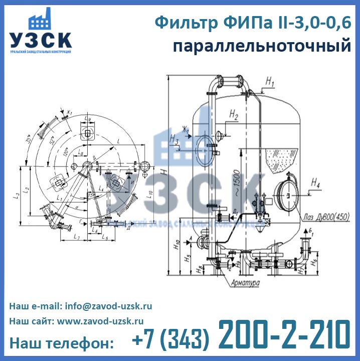 Актуальные цены на ФИПаII-3,0-0,6 в Туле Вы можете уточнить в отделе продаж Уральского Завода Стальных Конструкций (производитель ионитных фильтров), для этого заполните форму заказа внизу страницы.