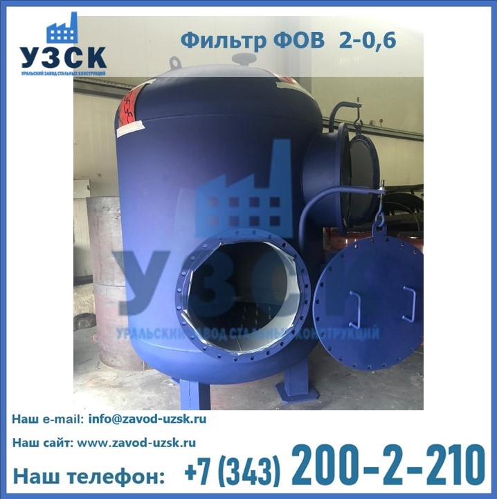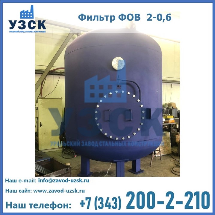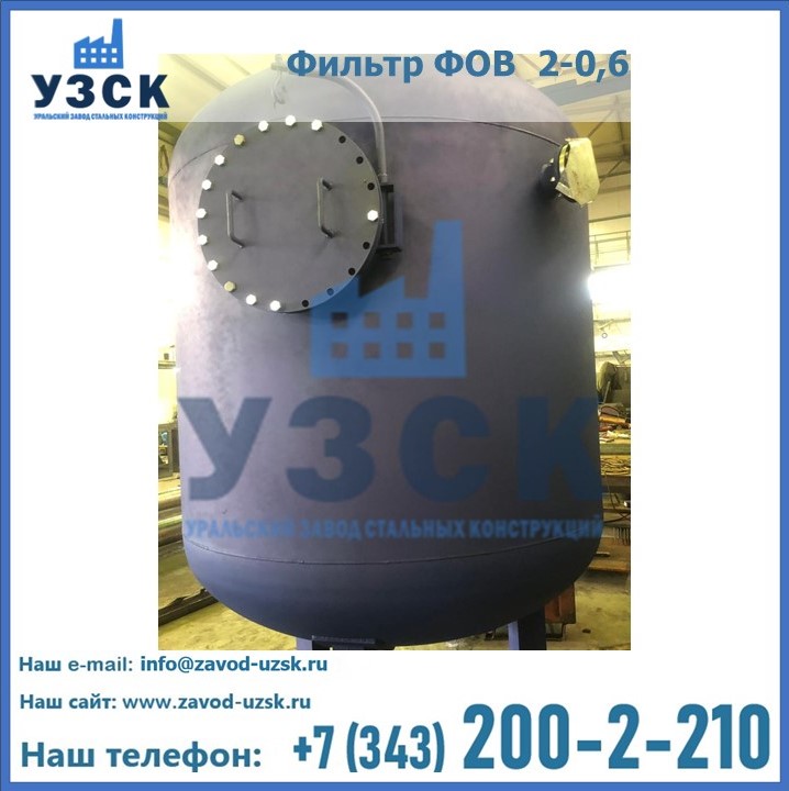 Удаление взвешенных веществ различного уровня дисперсности из рабочих жидкостей эффективно проводит фильтр осветлительный типа ФОВ (скорый или механический) — вертикально-цилиндрической формы установка, разработанная для систем водоподготовки различного класса. Оборудование представляет собой однокамерный агрегат для очистки воды рекомендованный для применения на станциях очистки стоков, в коммунальных котельных, на ТЭЦ, в промышленных отопительных системах и пр. Заказать производство ФОВ фильтров предлагает наш Уральский завод стальных конструкций в Туле. У нас можно купить фильтрационное оборудование различного класса и типа, в том числе фильтры ФОВ из нержавеющей стали.