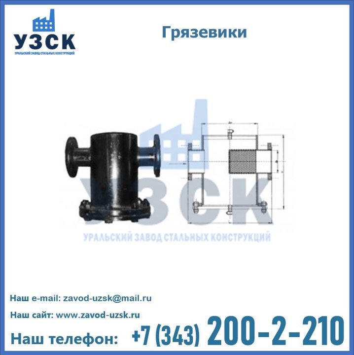 Уральский Завод Стальных Конструкций занимается производством и реализацией грязевиков в городе Тула, в наличии устройства горизонтального и вертикального типа, соответствующие всем требованиям и стандартам, в том числе условиям «Правил устройства и безопасной эксплуатации».