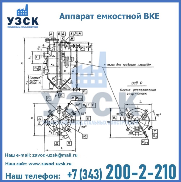Емкостные аппараты ВКЭ представляют емкость с эллиптической крышей и коническим днищем. аппарат может использоваться в Туле для приема и хранения жидкостей и взрыво- и пожароопасных веществ. Создаваемое давление не должно превышать 0,6; 1,0 МПа. Емкости ВКЭ выполняются как цельносварные. Используется марка стали, отвечающая степени агрессивности продукта и температуре эксплуатации.