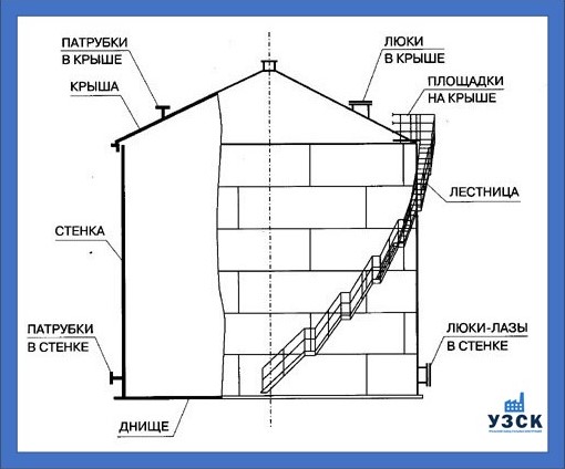 Конструкция резервуара 100 м3 состоит из: